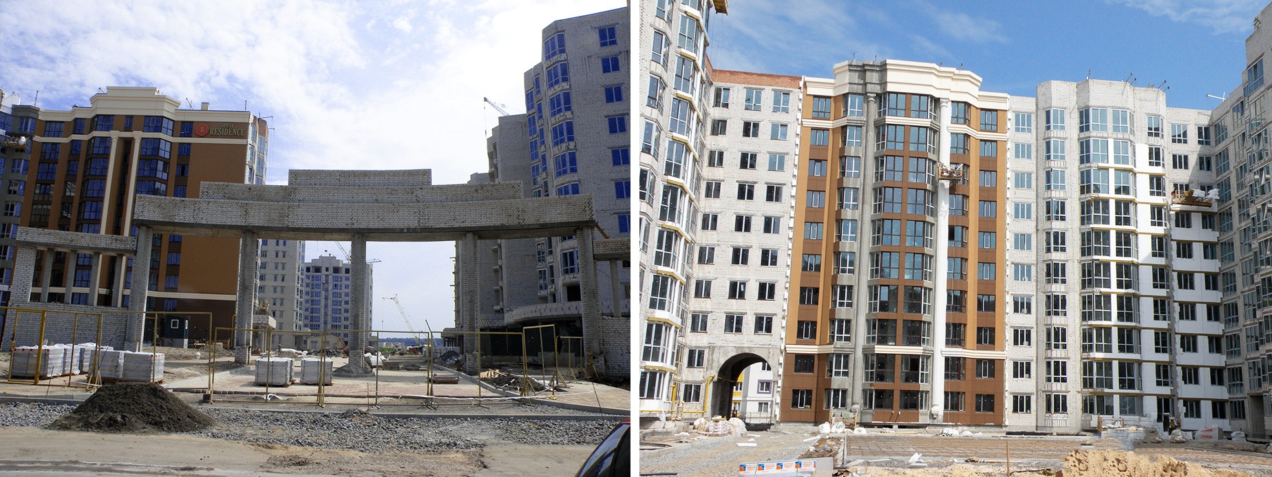 Въезд в городок оформляют в виде красивой арки, которая будет встречать жильцов и гостей и подчеркивать благородный статус ЖК «София Резиденс».