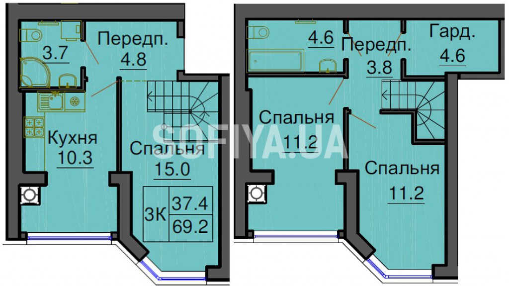 Двухуровневая квартира 69,2 м/кв