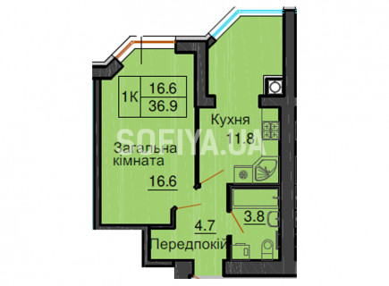 Однокімнатна квартира 36,9 м/кв
