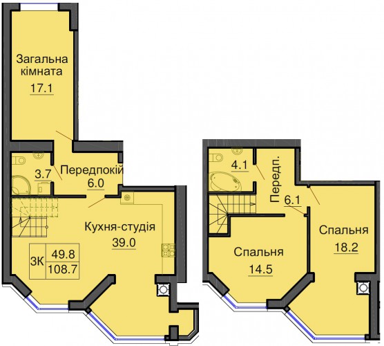 - Двухкомнатные