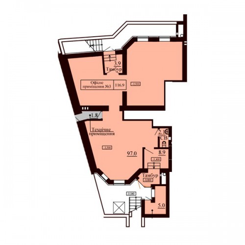 Здаються квартири і цокольні приміщення. Всього в будинку на вулиці Миру, 27 – 107 квартир і 5 нежитлових приміщень. Продаються без ремонту. 10-ти поверхова будівля побудована з білої цегли.
